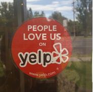 “People Love Us on Yelp” is a sticker along with a letter of recommendation from Yelp’s founders. The stickers are sent out once a year to businesses that qualify based on their history and rating on Yelp.