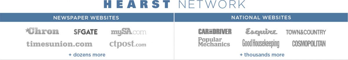 We serve your ads on top web properties visited by millions of consumers in your local area. These properties include local news sites like Chron.com and SFGate.com, and locally targeted national brands within Hearst’s portfolio like Esquire.com, GoodHousekeeping.com and CarandDriver.com.